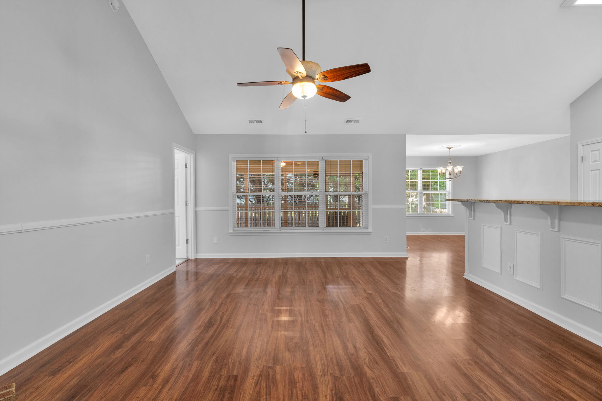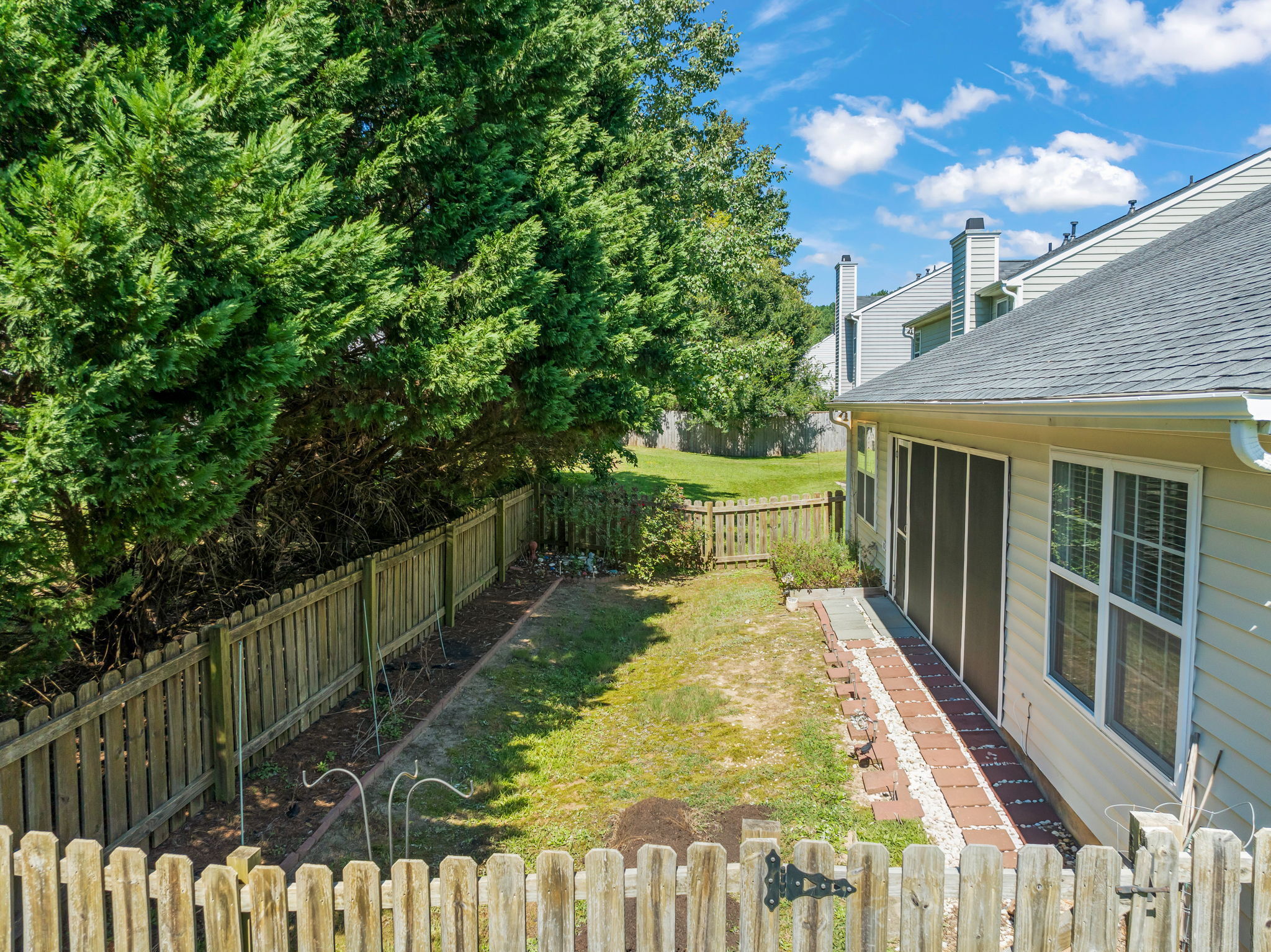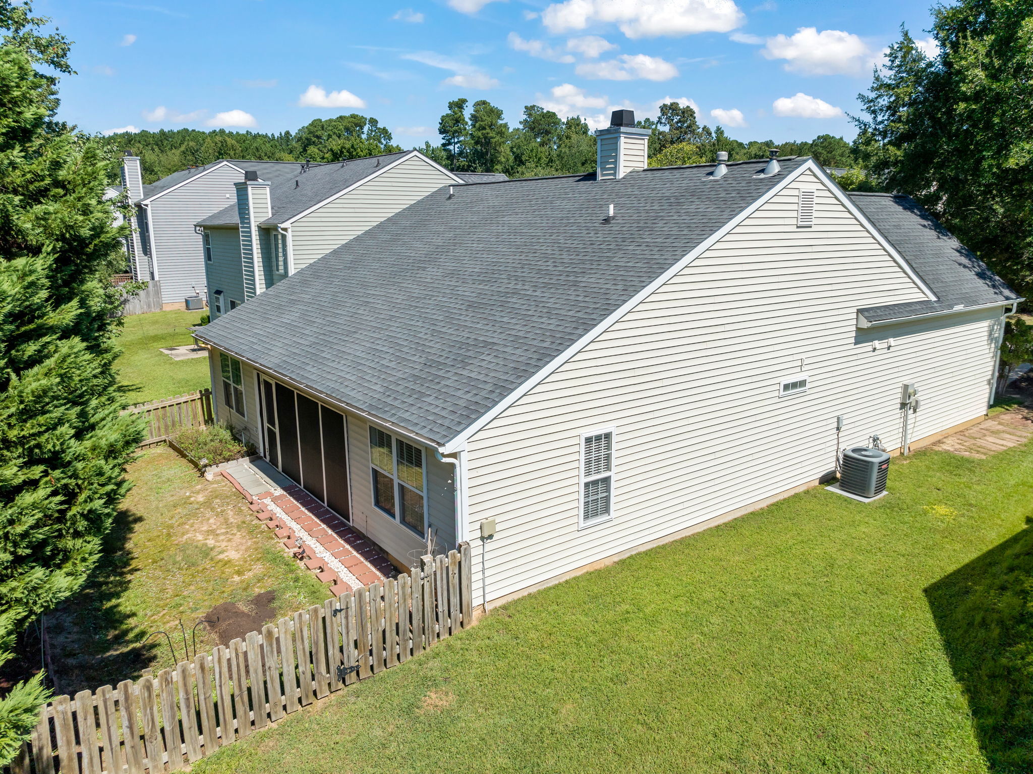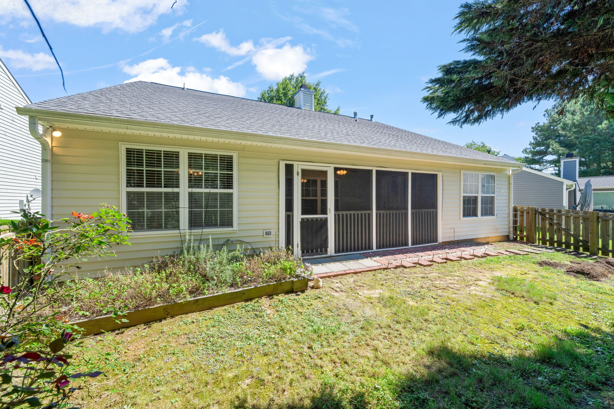 Welcome to 2109 Woodwyck Way—a home that beautifully combines comfort and convenience. This 3-bedroom, 2-bath residence features an inviting open floor plan with vaulted ceilings and a cozy fireplace, creating the perfect space for relaxing or entertaining. The kitchen is equipped with granite countertops and stainless steel appliances, making meal prep a pleasure. The primary suite offers a walk-in closet and private access to the screened porch, an ideal spot for morning coffee or unwinding in the evening. Designed to live like a ranch, this home also includes a versatile second-floor bonus space to suit your lifestyle needs. Outside, the fenced yard provides a private retreat for outdoor activities. A newer roof (2019/2020) adds peace of mind, and the cul-de-sac location ensures a quiet setting while still being close to shopping, dining, and the energy of downtown Raleigh. Residents also enjoy access to the community pool for added leisure. To top it off, the seller is including a one-year First American Home Warranty.