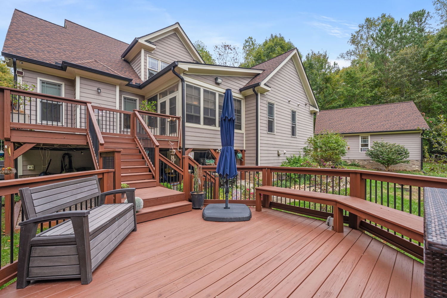 Experience the ideal balance of comfort and nature at 3581 Boulder Ct. This stunning 4-bedroom, 3.5-bath home perfectly combines elegance with everyday functionality. Start your morning with a cup of coffee in the bright four-seasons room, where tranquil views of your private wooded retreat set the tone for the day. At the heart of the home, the spacious kitchen with granite countertops flows effortlessly into the inviting living area—perfect for cozy evenings by the fireplace. The main-level primary suite provides a serene escape, while the granny suite offers incredible flexibility for guests or multigenerational living, complete with its own kitchen, living area, and bedroom. Step outside to an oversized deck, ideal for summer cookouts, morning yoga, or simply enjoying the peaceful surroundings. A detached two-car garage adds convenience, and with easy access to both downtown Wake Forest and Falls Lake, you’re never far from shopping, dining, or outdoor adventures. More than just a home, this is a lifestyle waiting to be embraced. Come see it for yourself—schedule your private tour today!